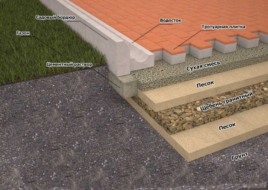 Чтобы основание плитки не подвергалось воздействию влаги, дренажный слой делают водонепроницаемым. Вся влага должна отводится в грунт через несущий слой.