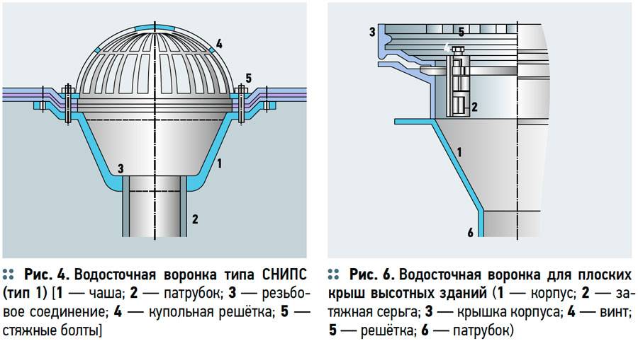 В настоящее время внутренняя водосточная системы плоских кровель представляет собой одну из двух разновидностей конструкции: сифонную или самотечную.