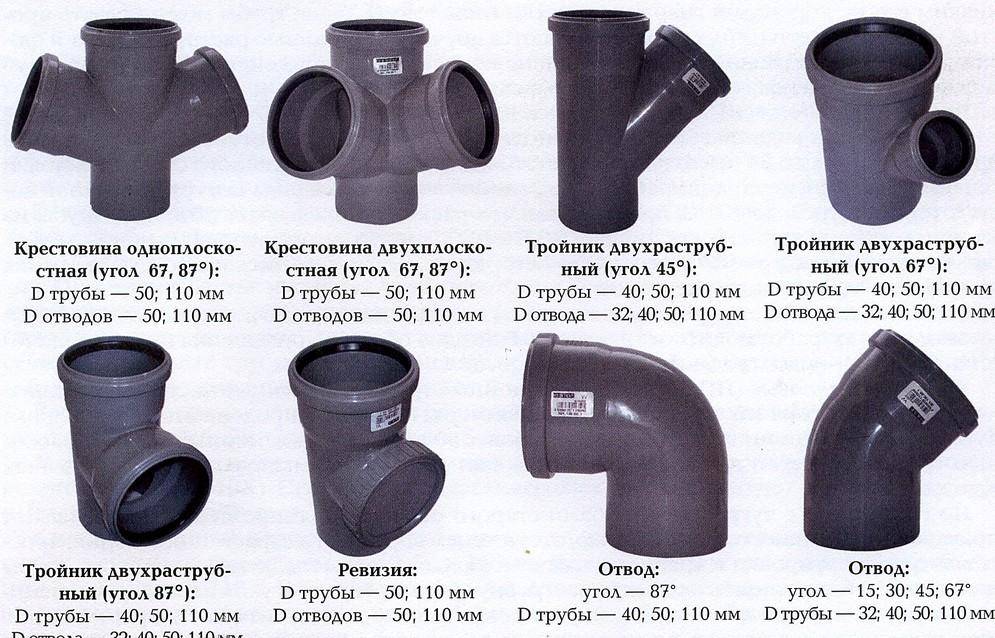 - переходники, делающие возможным соединение упомянутых выше элементов между собой, когда на входе диаметр достигает 110 мм, а на выходе – 50 мм.