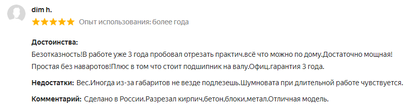Модель для профессиональной деятельности. Для домашних работ она подходит мало. Исключение – капитальный ремонт или строительство дома. Отлично подойдет для резки кирпича, облицовочного камня, тротуарной плитки. Лучше для этих целей ставить алмазный диск, желательно с охлаждением водой.