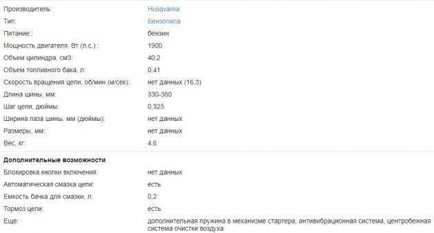 Технические характеристики пилы Husqvarna 365
