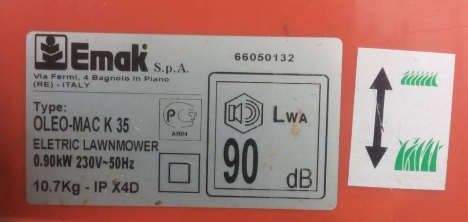Модель Oleo Mac К-35P является одной из первых в линейке электрических газонокосилок. Устройство отличается небольшими размерами и вместительным травосборником объемом 25 литров. В основе косилки электрический двигатель мощностью 1,1 кВт. Стоит отметить, что Олео Мак самостоятельно не производят электрические двигатели, а приобретают их у Австрийского производителя. Ширина кошения — 33 см.