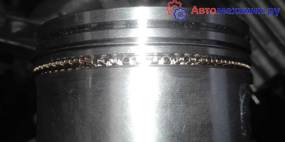 Нижнее маслосъемное. Оно может быть как целиковое так и сборное. Сборное маслосъёмное кольцо состоит из трех частей. Двух наружних колец, между которыми устанавливается маслозаборное кольцо. Сначала необходимо установить его а затем поставить тонкие кольца