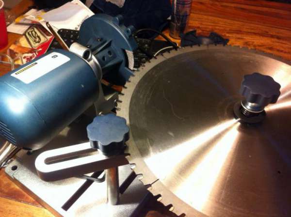 В качестве инструкции для изготовления приспособления для заточки циркулярных пил мы представим перечень конструктивных элементов, чертежи с их размещением и штатным местом в устройстве.