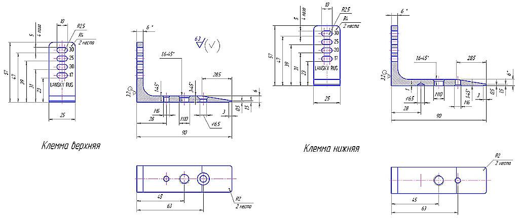 Чертежи самодельных клемм для точилки Lansky-Metabo из уголка 90х90х6