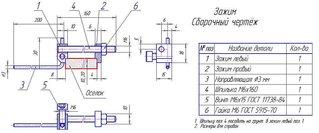 Сборочный чертеж зажима точилки для ножей Lansky-Metabo